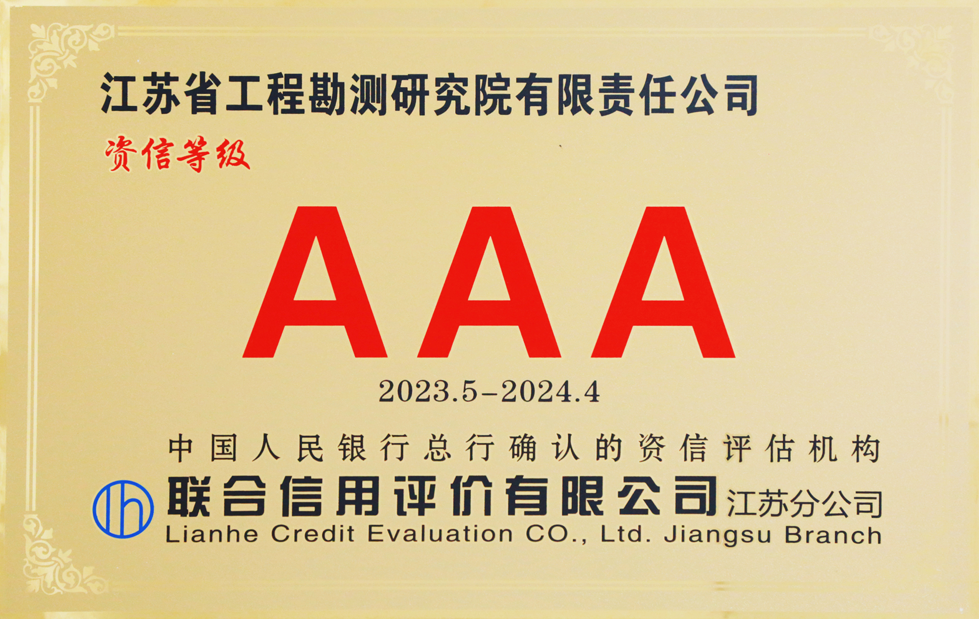 公司被评为AAA资信等级企业